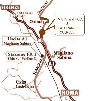 between Rome(50km) and Florence(180km) - La Grande Quercia, l'hotel è situato in posizione ideale di tre delle regioni più suggestive d'Italia: Lazio Umbria e Toscana, vicino alle più importanti città d'arte fuori questa zona e vicino l'uscita "Magliano Sabina" della A1 (Autostrada del Sole),